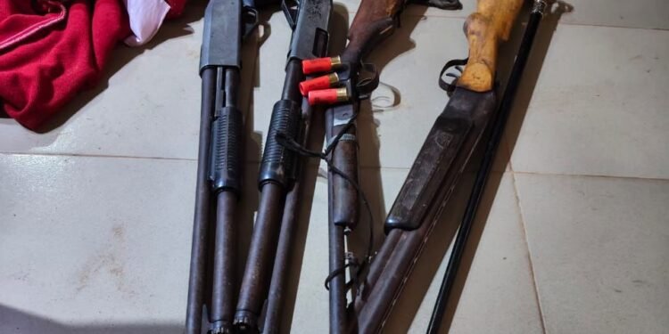 Recovered were two pump action guns, two English-made double-barrel guns, three live cartridges, red cloth and regalia bearing cult insignia and three black caps, as well as red caps with inscriptions associated with Vikings Confraternity.