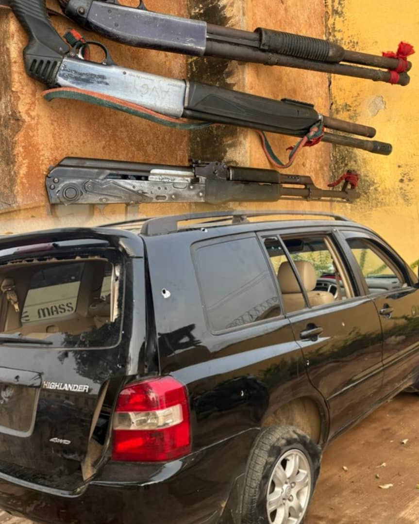 Recovered from them were a T.06 rifle, two pump-action guns, 24 rounds of T.06 ammunition, 15 live cartridges, assorted criminal charms, a red beret and a black Toyota Highlander SUV.