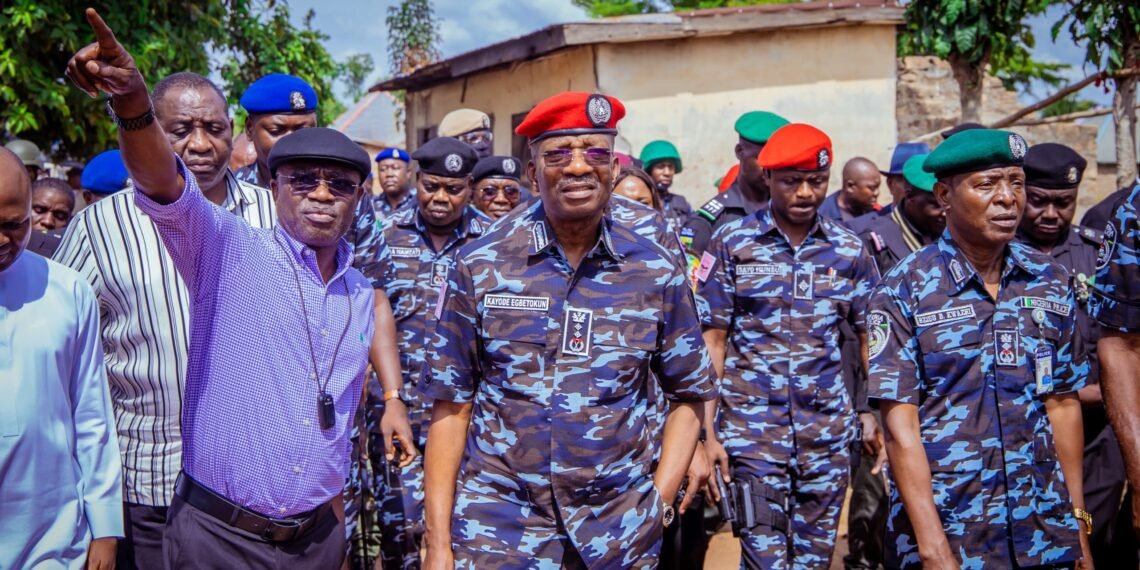 The IGP was accompanied by senior officers including the Deputy Inspector-General of Police in charge of the Department of Operations, Yakubu Kwazhi; the Deputy Inspector-General of Police in charge of the Department of Logistics & Supply, Adebola Ayinde Hamzat; the AIG Zone 4, Zachariah Fera; and the Commissioner of Police, SIS, Abayomi Shogunle,