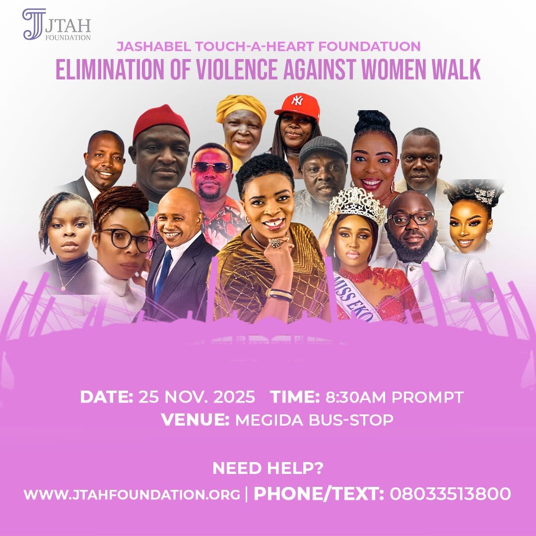Jashabel Touch-A-Heart Foundation (JTAH Foundation) will on Tuesday, November 25, lead a major awareness walk to mark the International Day for the Elimination of Violence Against Women.
