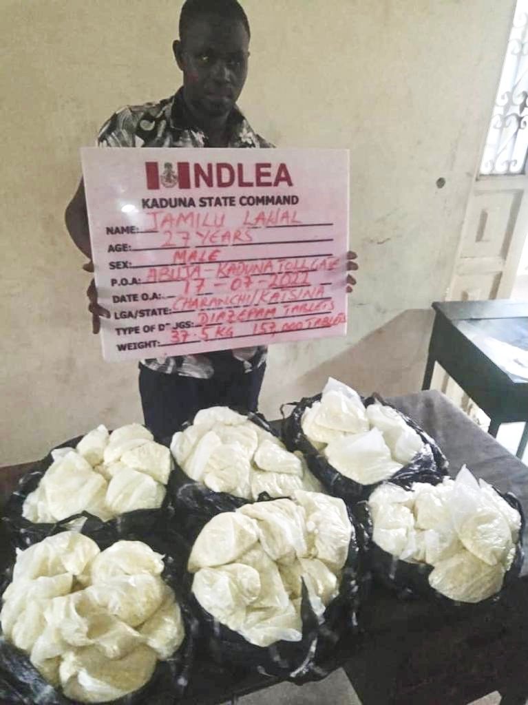 In Kaduna, a driver Jamilu Lawal, was arrested on Sunday, July 17, along Abuja-Kaduna expressway, with 157,000 tablets of Diazepam weighing 37.5kg. A follow up operation same day led to the arrest of the actual owner of the consignment, Abubakar Isiyaku, in Katsina.